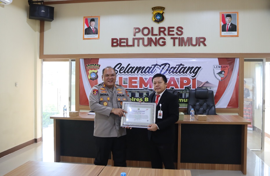 MusiEkspress.Com | JSCgroupmedia ~ Polres Belitung Timur menerima penghargaan bergengsi dari Lembaga Kajian Strategis Kepolisian Indonesia (LEMKAPI) atas dedikasi luar biasa dalam memberikan pelayanan terbaik kepada masyarakat.